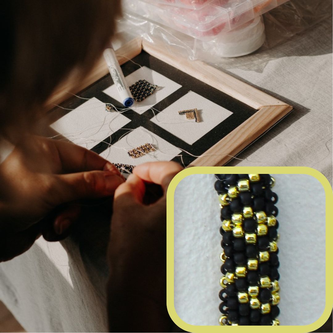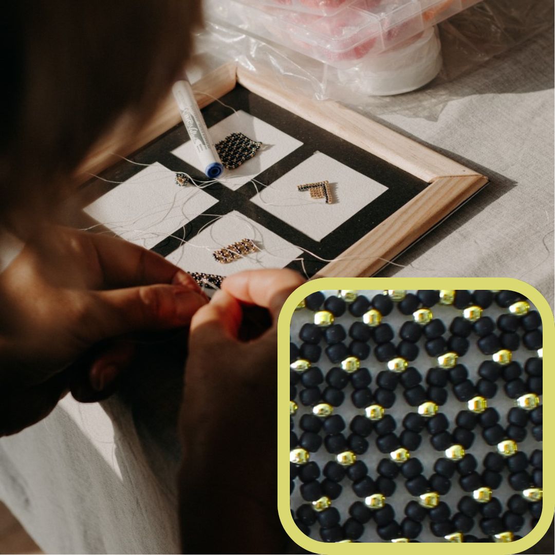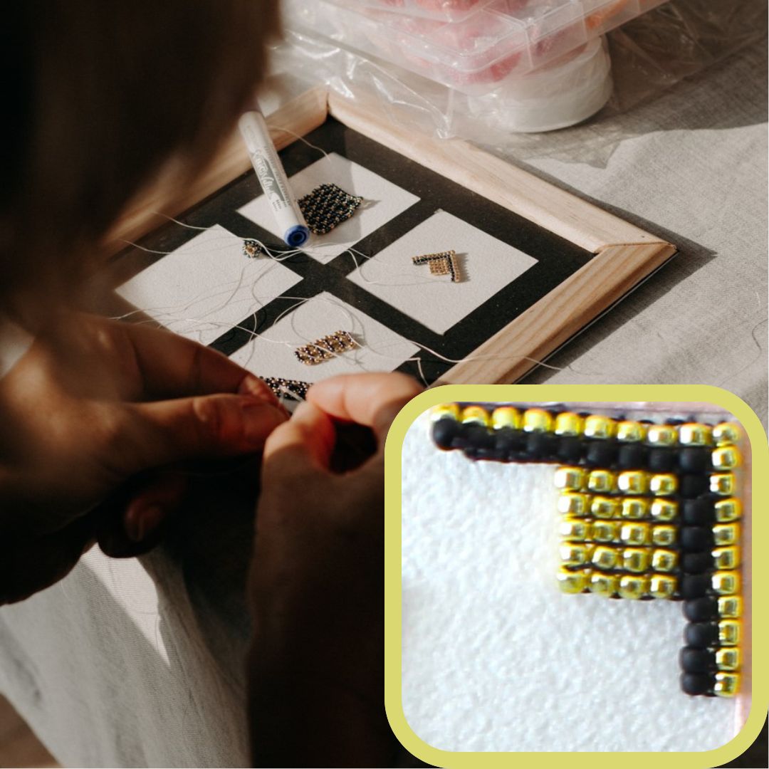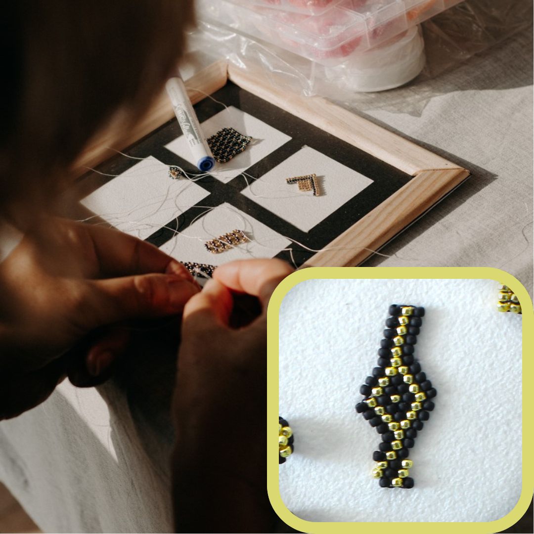 Je dessine mes modèles avant de broder les perles, une à une, à la main, pour former le motif. Je conserve le dessin dans un carnet pour garder une trace et pourquoi pas le réutiliser dans une future création.